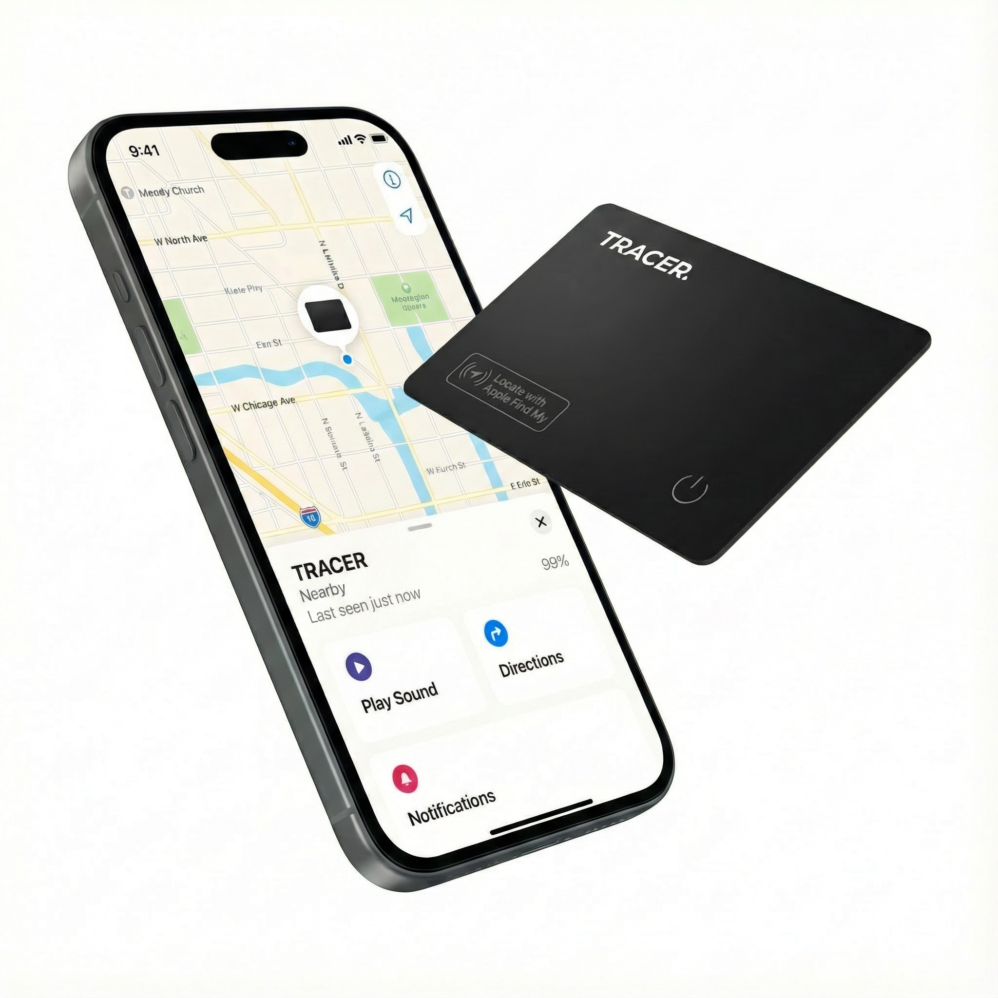 A sleek magnetic wireless charger designed for fast Qi-compatible charging. Power your phone and easily recharge your Tracer Tracking Card
